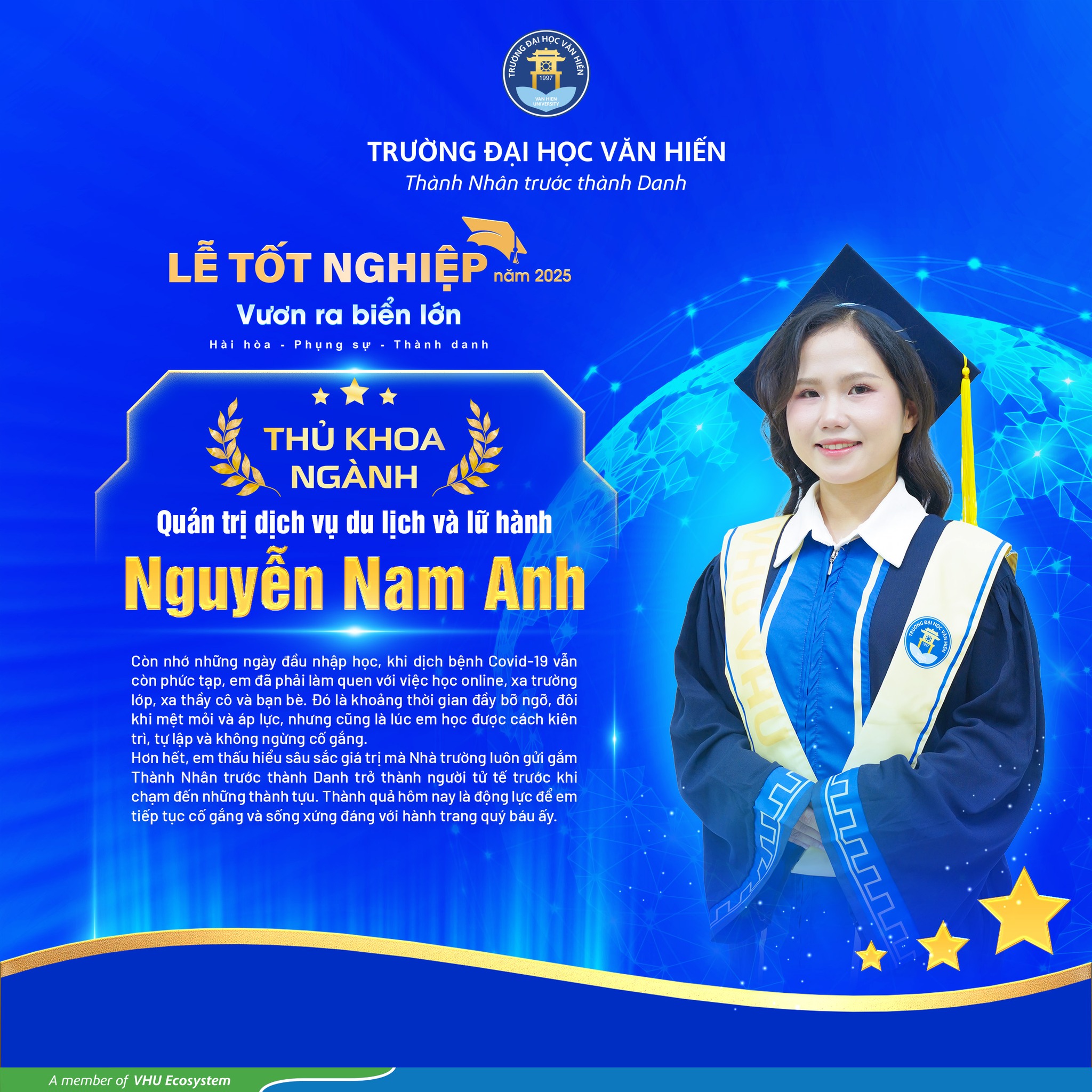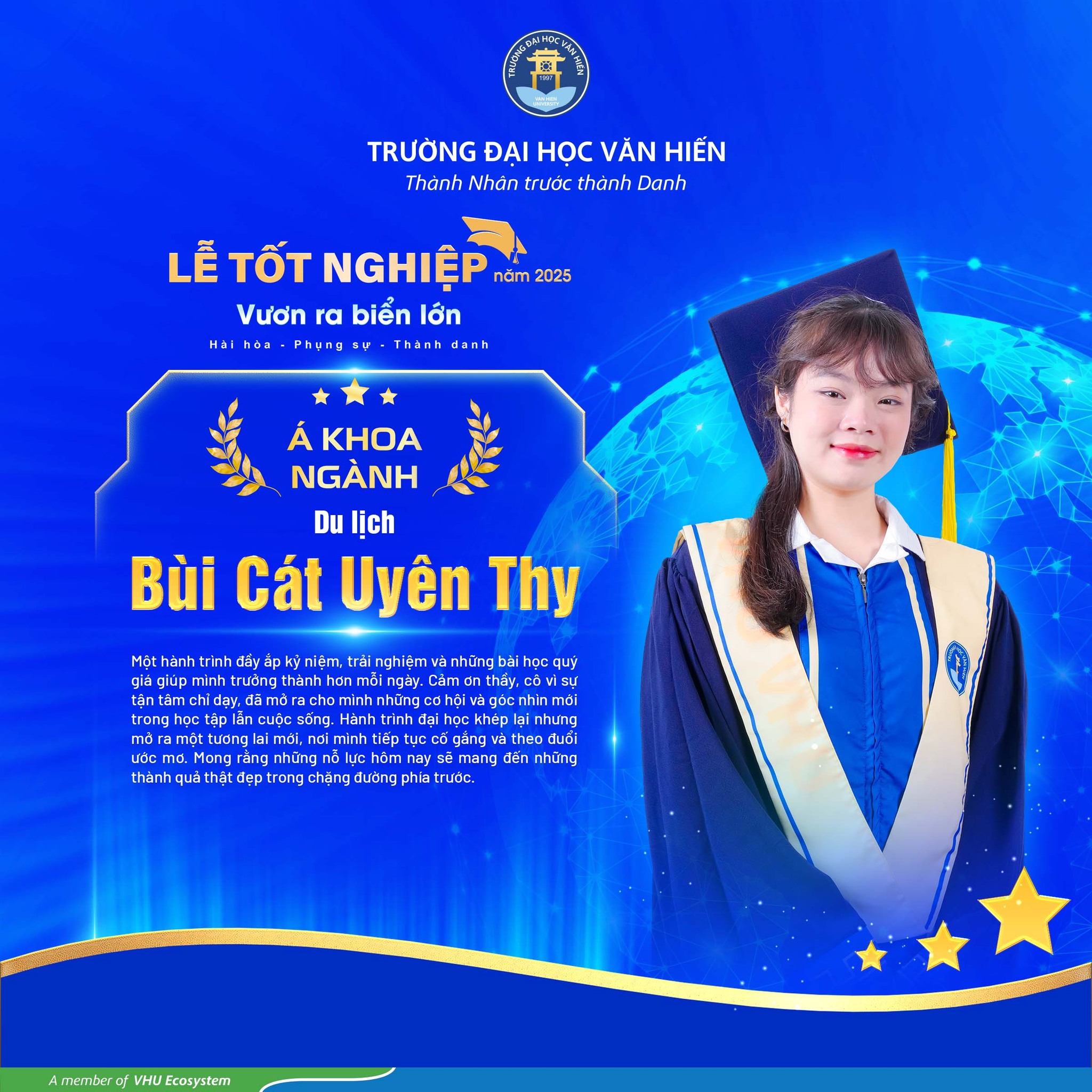 The Faculty of Tourism extends its sincere congratulations to the Valedictorians and Salutatorians. With a solid foundation of professional knowledge, well-structured practical skills, and a strong sense of responsibility and passion for the tourism and service industries, we are confident that these students will continue to excel, attain further accomplishments, and make meaningful contributions to the sustainable development of the industry.